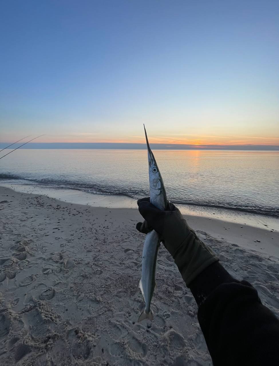 - Камбала — донная красавица, идеальна для береговой ловли. Заходит близко к берегу, особенно на закате. Лучшие точки: Куршская коса (дикие пляжи у Рыбачьего, Морского), Зеленоградск. Наживка — креветка, червь, кусочки рыбы. Сезон: май–октябрь, вечер/ночь — топ-время.